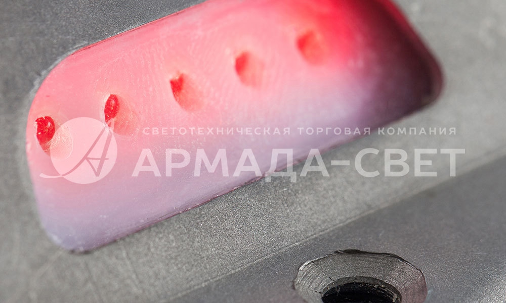 Внутри корпуса в двух противоположных сторонах находятся две светодиодные линейки (с белыми и красными светодиодами).