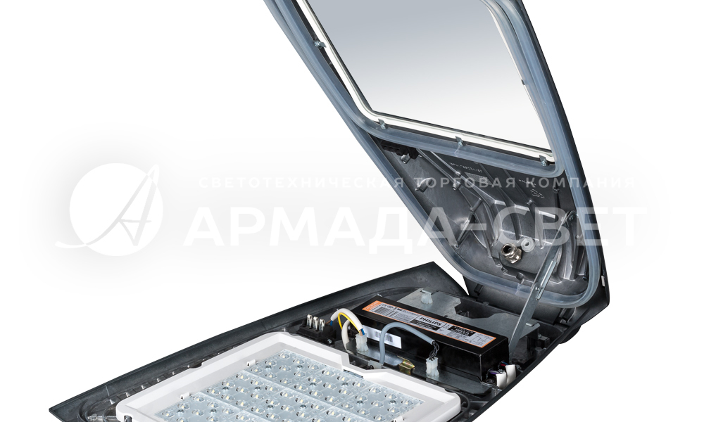 Корпус изготовлен из алюминиевого сплава методом литья под давлением. Съёмная светодиодная плата.