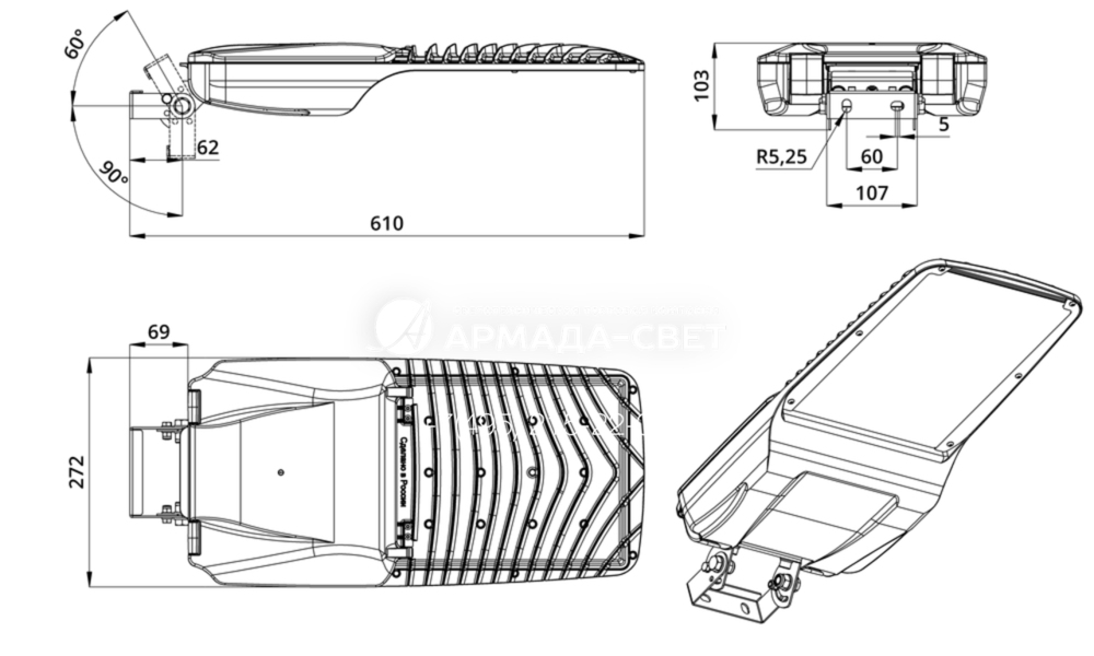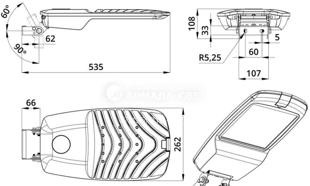 Крепление на поворотный кронштейн. RAL9007. Гроза (М, Мv2, Lv2)