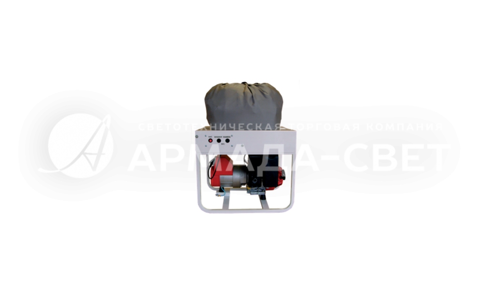 Мощность автономного источника электроэнергии – 2,2 кВт. Бензин, расходуемый по 0,6 л/час, заливается в топливный бачок (4,5 л). Произведенная электроэнергия потребляется на нагнетание вентилятором воздуха в цилиндрический тканевый мешок для его расправления вверх. Он образует оптический отсек, в котором в патрон Е40 установлена ДНаТ 600. Работу лампы поддерживает ЭмПРА. Высота цилиндра трансформируется от трех до пяти метров. Высокая световая отдача источника света позволяет образовать интенсивный световой поток, распределяющийся вокруг башни.