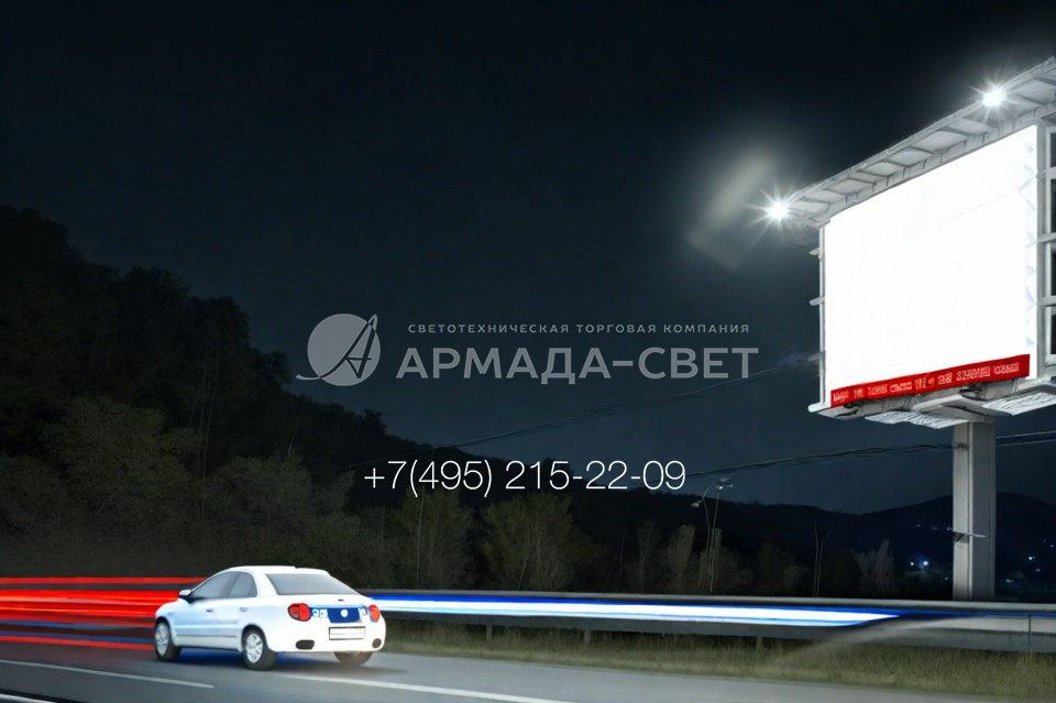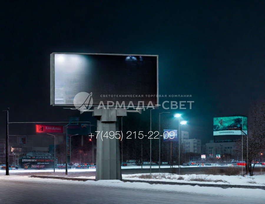 Кроме металлогалогенных, в освещении рекламных щитов успешно применяются светодиодные прожектора.